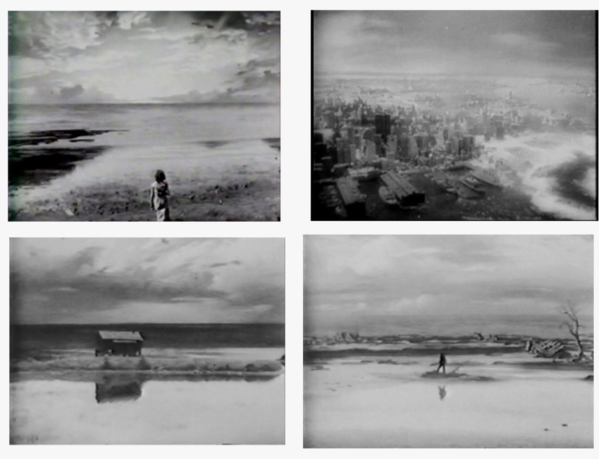 Scientists are in a panic as barometers plunge and reports of cities flooded in tidal waves and hurricanes are breathlessly reported in radio broadcasts.  In these opening scenes, the only destruction we witness is the lavish house in the woods of Martin and Helen (Sidney Blackmer and Lois Wilson), crushed under trees blown over by high winds.  Then the real spectacle begins: New York collapses in primitive yet evocative miniatures that are more expressionistic than realistic, like an avant-garde short dropped into a science fiction thriller.  Crude travelling mattes put people amidst the destruction, fleeing collapsing buildings or getting crushed by debris, and a magnificent miniature gives us a God’s eye view of New York City swamped by a tsunami.  By modern standards it’s not realistic but it’s mesmerizing in part because it’s a cinematic imagining of something no filmmaker had attempted on screen before.  It’s a first try at the kind of disaster spectacle we now take for granted and these technicians create it all from scratch, not just the technical matter of the physical special effects but the very visualization of the end of the world.