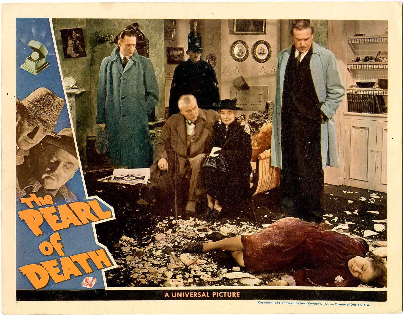 In adapting Arthur Conan Doyle’s story “The Adventure of the Six Napoleons,” screenwriter Bertram Millhauser added a patriotic speech, as was typical of the wartime era, in which Holmes “likened the greed of men for pearls to the greed for world domination.” To appeal to audiences looking for thrills, he also added a couple of new characters to fit the classic B tropes.