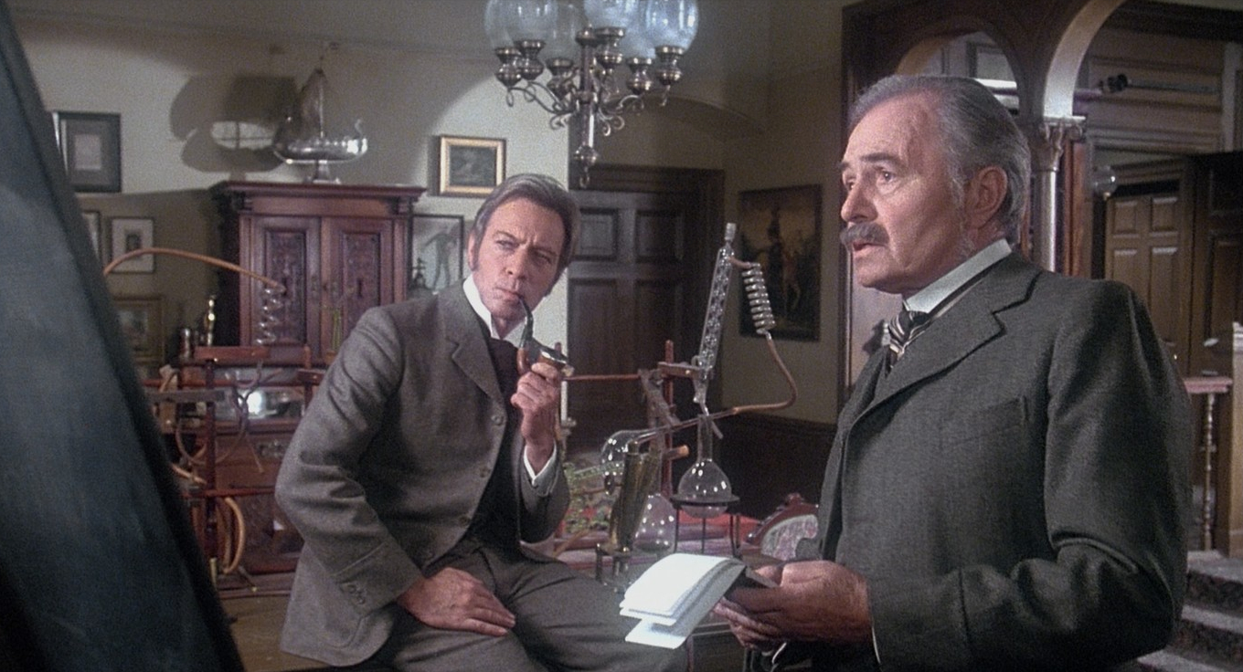 Cast:  Christopher Plummer (Sherlock Holmes), James Mason (Dr. John Watson), David Hemmings (Inspector Foxborough), Susan Clark (Mary Kelly), Frank Finlay (Inspector Lestrade), Anthony Quayle (Sir Charles Warren), Donald Sutherland (Robert Lees), Geneviève Bujold (Annie Crook), John Gielgud (Lord Salisbury), Peter Jonfield (William Slade), Roy Lansford (Sir Thomas Spivey), Rob Pember (Makins).