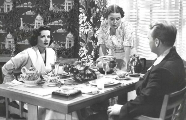 Writer Charles Brackett rejoins Mitchell Leisen in The Mating Season, one of the of the finest writing talents responsible for the witty and probing scripts produced for one of Hollywood’s most civilized directors during the thirties and forties. Working in the studio style established by Ernst Lubitsch, the Leisen tradition is notable for its chic, camp, witty dissolute sexual comedies, opulent sets and stories of dynamic women in pursuit of men and power who find themselves diminished in the end. Ritter belongs to this same tradition where women are strong and men are weak and is virtually the whole show as is frequently true of women in Leisen’s films. Never allowing his own personality to intrude in the film, Leisen succeeds in drawing the best out of Ritter while failing to extract starring performances from the newlyweds John Lund and Gene Tierney. In light of a reputation for one of the most varied oeuvres of any American film director, Leisen’s The Mating Season is significant only in that it appears in the decline of Leisen’s career when public taste found Leisen’s visual elegance and couturière films out of fashion.